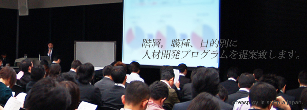 | テーマ別研修 | コーチング研修 O.J.T指導者研修 O.J.T推進研修 部下指導と面接の仕方研修 接遇応対・クレーム応対能力向上研修 接遇インストラクター養成研修 ディベート研修 折衝・交渉力強化研修 プレゼンテーション研修 事業計画形成能力向上研修 |